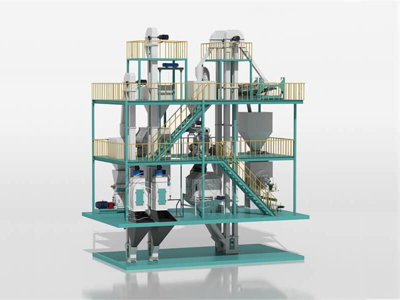 Make a Quick Inquiry Now !The main equipment of a complete 5-7 T/H animal feed pellet production line includes a hammer mill machine, 5-7 t/h feed pellet machine, double-paddle mixer, counter-flow feed pellet cooler, pellet crumbler machine, box cylinder pulse dust remover, vibrating screen classifier, packing machine, etc. This complete feed pellet plant can accomplish raw material mixing, transmission, feeding, and pelletizing. After the raw materials become feed pellets, the following equipment can cool them down and pack them into bags.