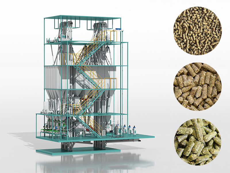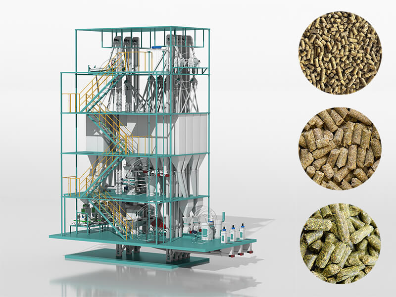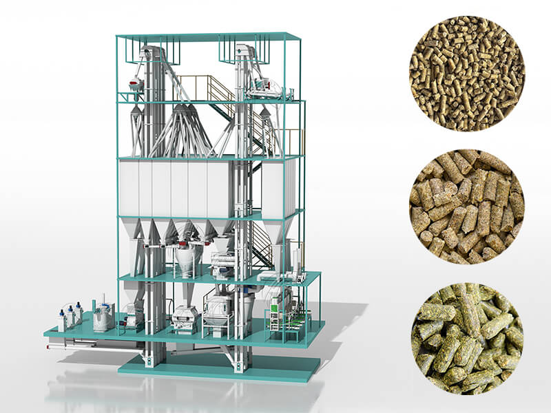 Feed Grinder →Feed Mixer → Feed Pellet Mill → Counterflow Cooler → Feed Pellets Crumbler → Feed Pellets Grading Sieve → Automatic Weighing and Packing Machine
