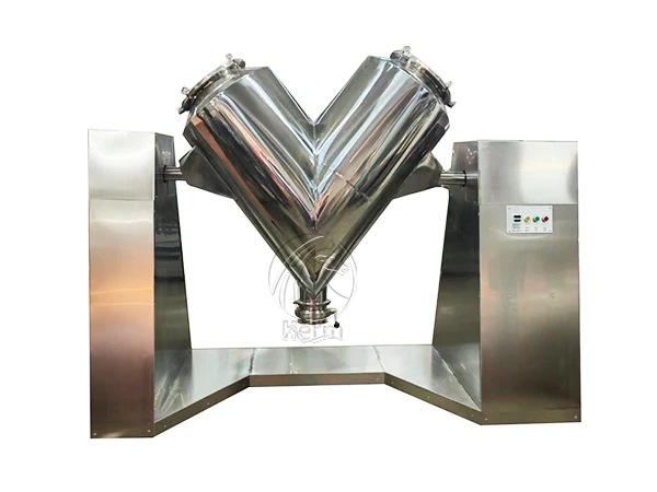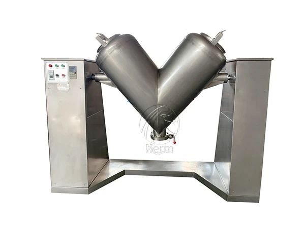 Manufactured by Henan Herm Machinery Co., Ltd., the V-type mixer is made of high-quality stainless steel, ensuring smooth operation, high mixing uniformity, minimal residue, and easy cleaning. It is an ideal choice for modern production requiring precise and hygienic mixing.